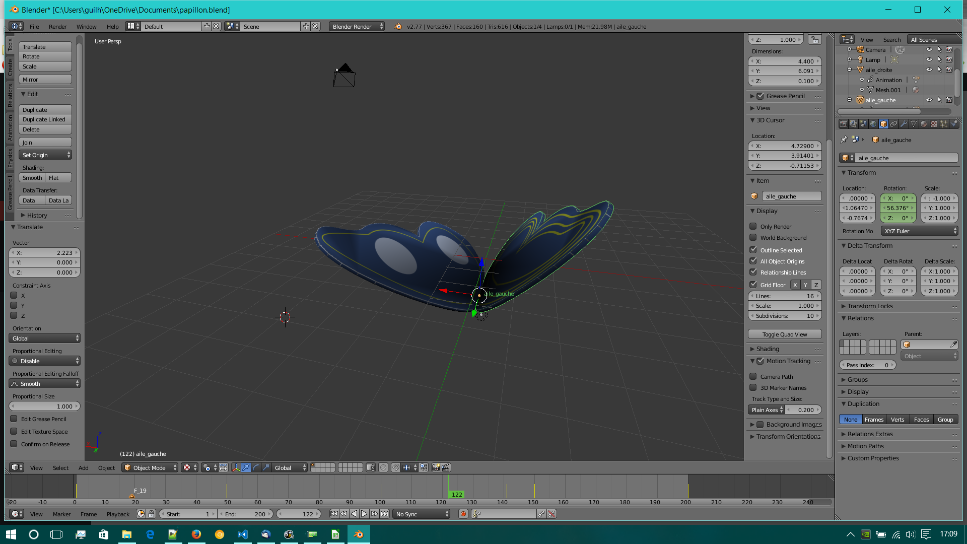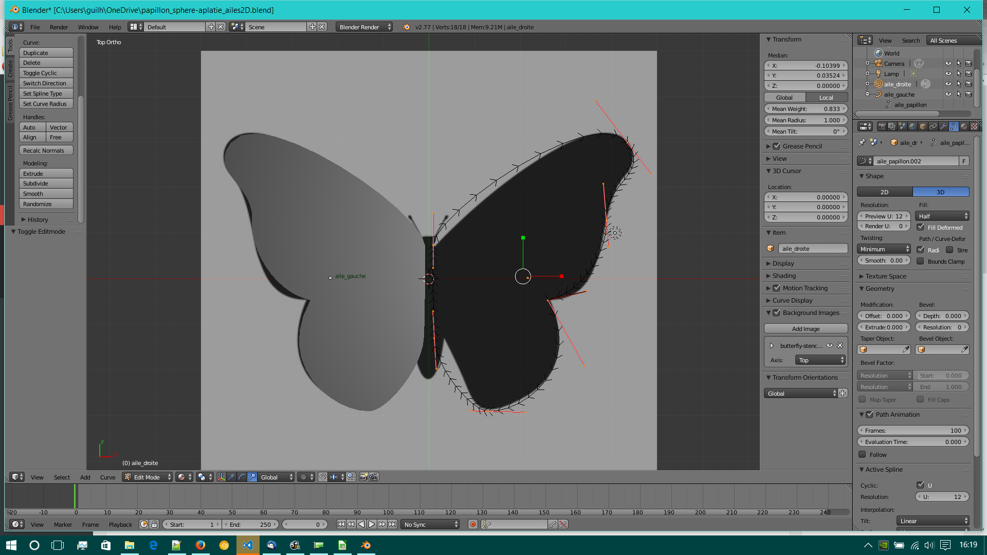 Les ailes du papillon ont été tracés à partir d’un modèle (gabarit ou blue-print). Les bords on été tracés en courbe de bézier ( chemin vectoriel).